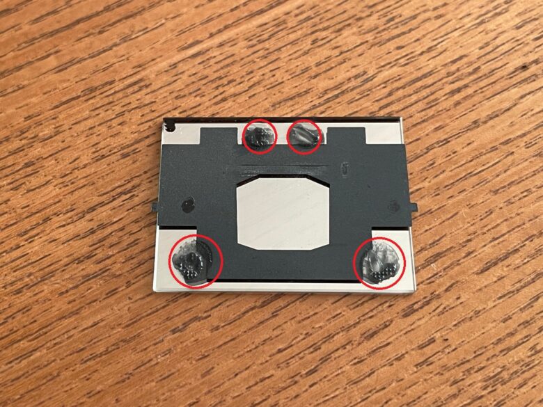 なので、ちょっとチャレンジですが「残っている接着剤の跡」はそのまま”有効活用”します。