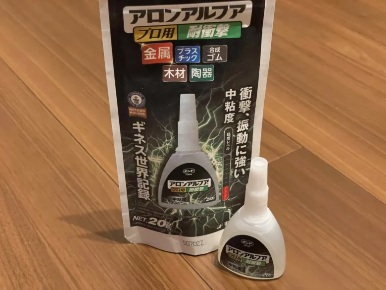 いよいよ「アロンアルファ プロ用・耐衝撃」の出番です。
