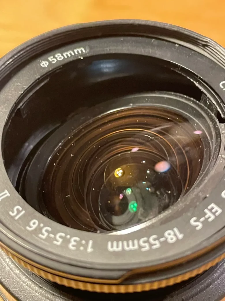 修理も終わり、最後に何気なくレンズ保護用の「レンズフィルター(58mm径)」を装着しようとしたその時です。