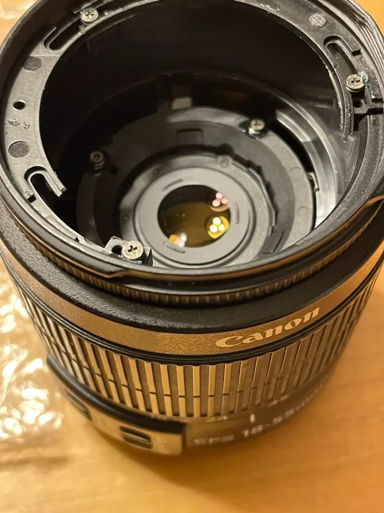 - 完動品の中古相場が4,000円〜8,000円程度。2,000円でゲットして修理⇒完動品に復活すれば、実質中古相場の半額以下でIS付き標準ズームが手に入ることになります。